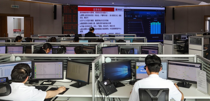 在貴州110服務(wù)中心,接線(xiàn)員正在工作。人民網(wǎng) 李宇攝