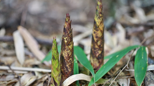 竹海茫茫,青山疊翠。初春時節,微風吹過,遵義市桐梓縣的方竹翻起了層層竹浪。大婁山方竹筍主要生長在高海拔山區,獅溪鎮柏芷山、箐壩山是桐梓連片原生態方竹林面積最大的區域,而柏芷山海拔較高,每年筍子出土最早