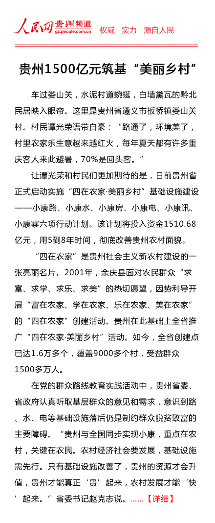 議 題:會議將聽取諶貽琴常務(wù)副省長等省領(lǐng)導(dǎo)通報貴州省“四在農(nóng)家·美麗鄉(xiāng)村”基礎(chǔ)設(shè)施建設(shè)六項行動計劃工作推進情況等。