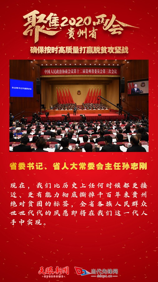 孫志剛在講話中指出,2020年是“兩個一百年”奮斗目標(biāo)的歷史交匯點,是具有里程碑意義的一年。我們要確保按時高質(zhì)量打贏脫貧攻堅戰(zhàn),確保全面建成小康社會和“十三五”規(guī)劃圓滿收官。現(xiàn)在,我們比歷史上任何時候都更接近、更有能力徹底撕掉千百年來貴州絕對貧困的標(biāo)簽,全省各族人民群眾世世代代的夙愿即將在我們這一代人手中實現(xiàn)。相約2020,最后決戰(zhàn)的沖鋒號角已經(jīng)吹響,我們要保持戰(zhàn)略定力、堅定必勝信念,萬眾一心加油干,越是艱險越向前,堅決奪取脫貧攻堅、同步小康決勝之年的全面勝利!(許邵庭 陳曦 杜朋城 曠光彪)