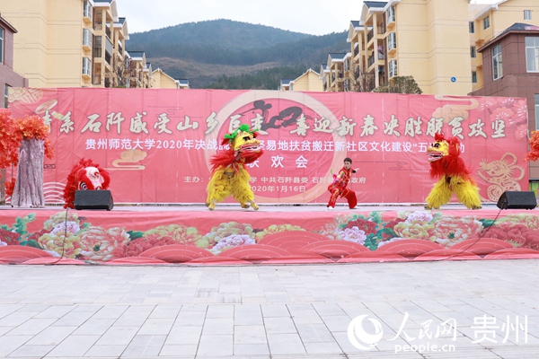 “聽說還有舞獅表演呢。”“快點兒,去晚了就搶不到好位置了。” 盡管室外氣溫接近冰點,羅家寨安置點的搬遷居民非但沒窩在家里守著火爐,反而循著音樂聲,向露天廣場聚攏參加貴師范大學師生帶來的聯歡會盛宴。舞獅表演、快閃表演《我和我的祖國》、互動活動、新年祝福歌……舞臺前,座無虛席。在輕松愉悅的氛圍下,志愿者們用專業的表演,用藝術的感染力,讓搬遷群眾感受到更多的新家溫暖,讓搬遷群眾進一步堅定脫貧致富的信心與決心。(孫遠桃 上官暢 雷韻 )