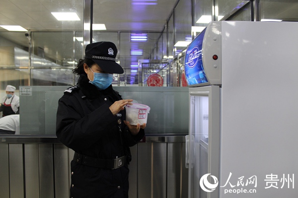 何明紅在檢查餐食。貴州省第二女子監獄供圖