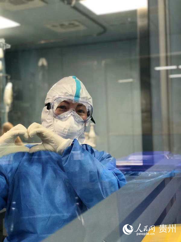 貴州醫科大學附屬醫院護士鄭秀在負壓病房。貴州省衛生健康委供圖