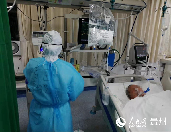 貴州醫務人員李玲藝正在給湖北患者進行護理。貴州省人民醫院供圖
