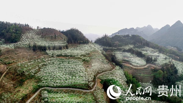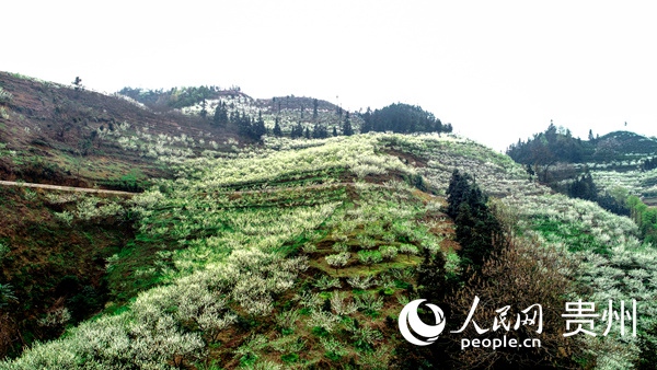 人民網貞豐3月8日電 (趙靜 涂敏 高華 陽茜) 三月,北盤江畔貞豐縣滿山遍野的李花競相綻放,宛如春雪,充滿濃濃春的氣息。