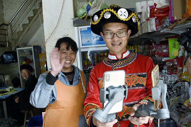 戰馬村鄉親們也紛紛通過鏡頭與“大腳嬸”打招呼。特別是在與戰馬村小超市經營者楊會交流時,了解到他們夫婦二人通過經營小超市等方式供養三個孩子讀大學時,對這位“同行”表示敬佩,并期待戰馬村鄉親們的日子越過越好、培養出更多的大學生。
