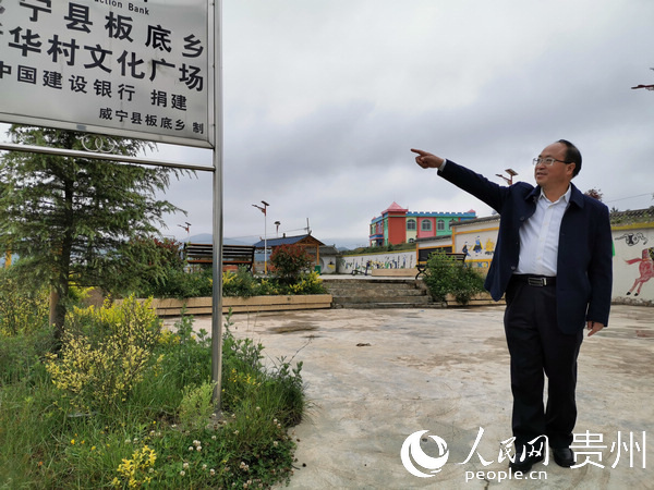 何登亮介紹新華村文化廣場建設情況。人民網 王欽 攝