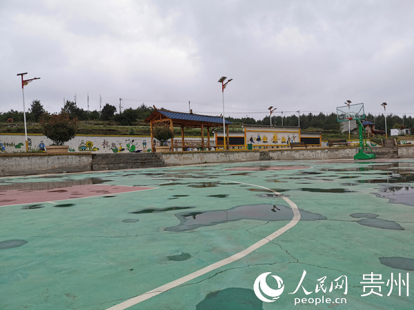 建行為新華村捐贈建設的文化廣場和籃球場。人民網 王欽 攝