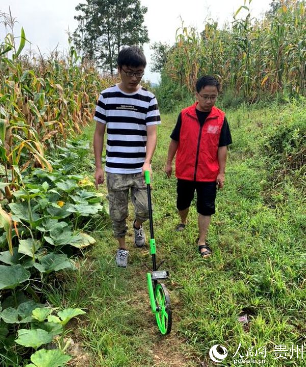 熊平(右)與白云區(qū)駐村工作組成員測量土地。受訪者供圖