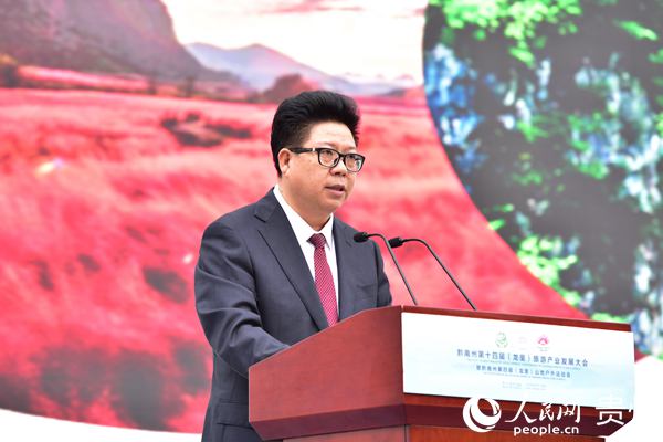 人民網(wǎng)龍里9月25日電 (孫遠(yuǎn)桃)“黔南是文化多元的民族之州,是峰巒奇秀的世遺之州,是探天攬?jiān)碌奶煅壑荩枪彭嶕r香的毛尖之州,是園藝薈萃的綠博之州,是不忘初心的紅色之州。今天,讓我們一起領(lǐng)略黔南絕美風(fēng)光、體驗(yàn)黔南別樣風(fēng)情、品嘗黔南獨(dú)特風(fēng)味。”在9月25日舉行的黔南州第十四屆(龍里)旅游產(chǎn)業(yè)發(fā)展大會(huì)上,黔南州州長(zhǎng)吳勝華進(jìn)行現(xiàn)場(chǎng)旅游推薦,誠(chéng)摯邀請(qǐng)廣大游客和企業(yè)家到黔南旅游、興業(yè)。