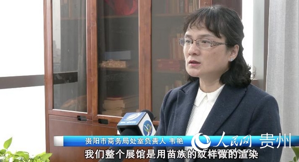 “多彩貴州 爽爽貴陽”展館現場布展總監 魯銘御:這次我們一共分了幾大區域,一是展示了16家企業的產品的長桌;二是有17幅苗繡的紋樣的墻壁;三是有進博會期間最大的直播間;四是有兩塊顯示屏展示“爽爽貴陽”城市宣傳片的洽談區。