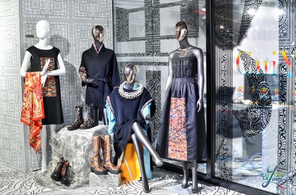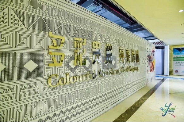 她說,愛馬仕剛剛進中國的時候,就用我們的繡件紋樣制作了一條絲巾,這次把它做在墻上和地面,其實真正想表達的一是貴州文化,二是苗繡不僅精致,更是一部用刺繡表達的哲學,三是新舊結合呈現出一種當下流行的時尚元素,看上去不僅別致還很潮,一點也不比國際大牌差。