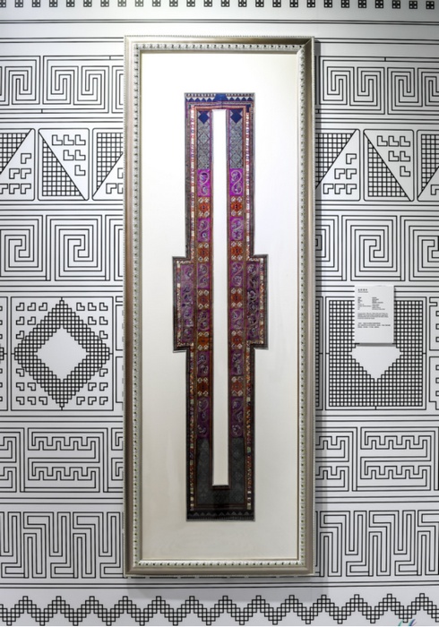 苗疆故事民族服飾博物館館長曾麗告訴我,此次進博會上“多彩貴州 爽爽貴陽”館的整個展館的設計融入了苗繡的紋樣,例如這幅近百年歷史的老繡件。