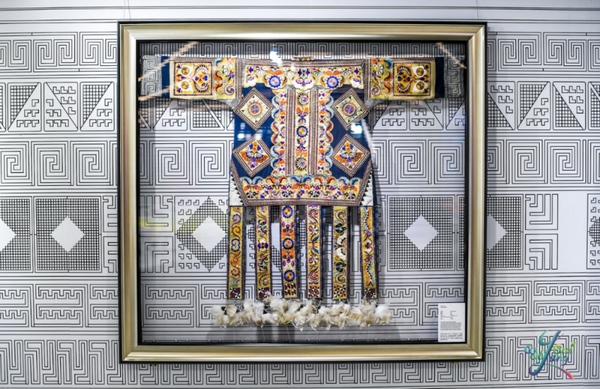 小知知在進博會“多彩貴州 爽爽貴陽”館里發現了許多精致的苗繡,色澤就像拋光一樣呈現出絕佳的狀態,不僅如此,各色不一的紋樣更是布滿了整個展館。