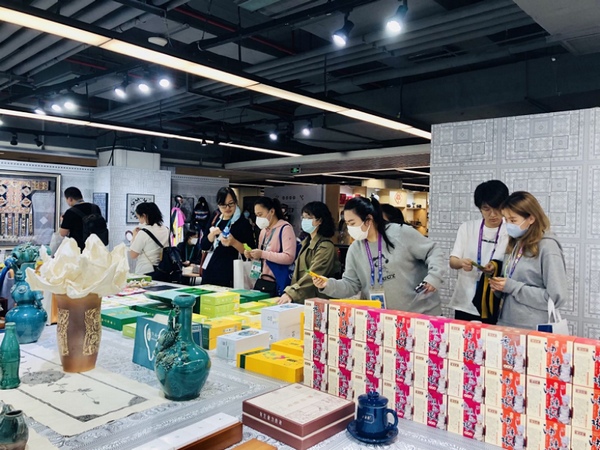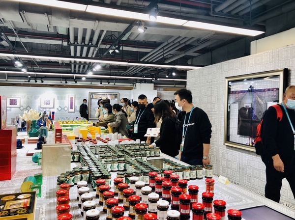 展館由宣傳區、文化展示區、好物展示區、沙發洽談區、茅臺禮盒現場銷售區及直播區六大功能區域組成,集中展銷18家貴州本土企業的辣椒、文創、茶葉、刺梨等四大類185種產品。