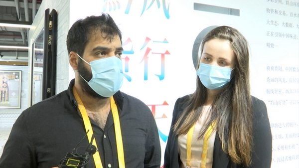 外國參展嘉賓 :我覺得貴州的苗繡文化非常好,包括辣椒、茶葉、飾品等我都很喜歡,展館陳列非常漂亮。(貴陽廣播電視臺供稿供圖)