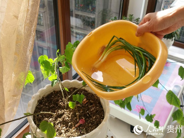 居民用洗菜水給植物澆水。圖片由湯燕軍提供