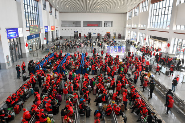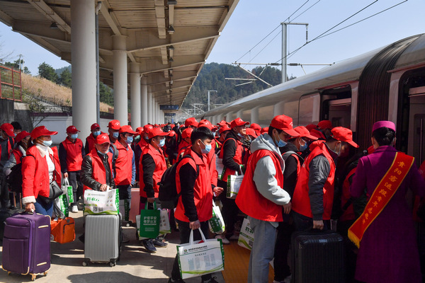 成都局集團公司凱里車務段提前2天制定務工人員專列運輸組織方案,主動對接地方人社部門了解勞務輸出和人員到站情況,專門安排人員辦理團體票,細化集結、進站、安檢、候車、上車等環節的疫情防控和客運服務措施,確保務工人員安全、有序、溫馨出行。