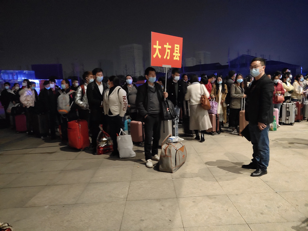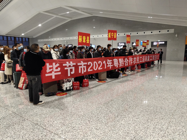 人民網貴陽2月21日電 2月21日7時56分,600余名務工人員搭乘D2811次從畢節高鐵站始發,前往廣州南站,這是貴州首趟成組開行的復興號返程務工專列。
