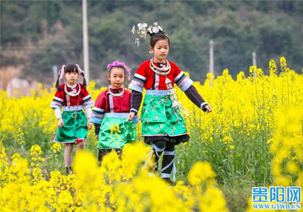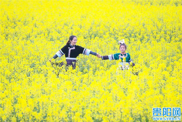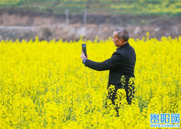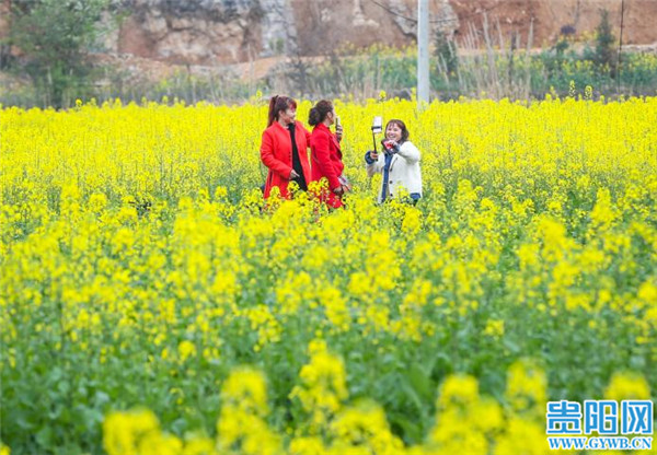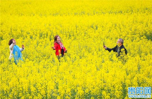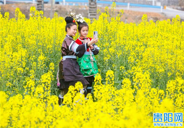 貴陽網訊 2月16日,游客在貴州省黎平縣肇興鎮皮林村油菜基地賞花留影。春節假期,隨著氣溫回暖,該村成片的油菜花競相開放,形成金色的花海,吸引人們踏春賞花,感受春天的氣息。(貴陽日報融媒體記者 石照昌 攝)
