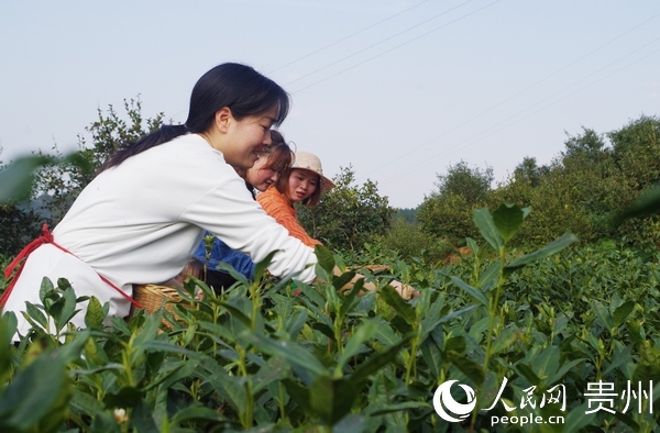 黎平縣高屯萬畝茶園基地進入采摘期。胡憲林 攝