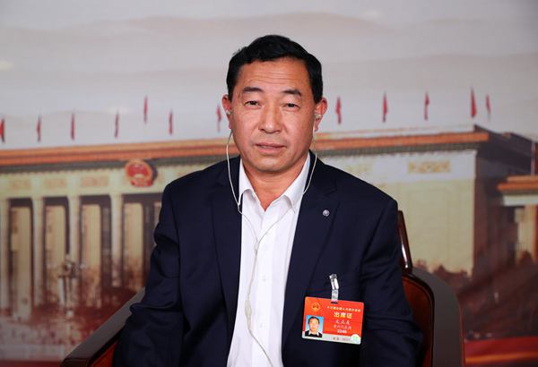 全國人大代表、貴州省畢節市市長張集智接受采訪。杜朋城 攝