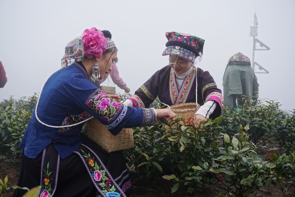 采茶。普安融媒體中心供圖