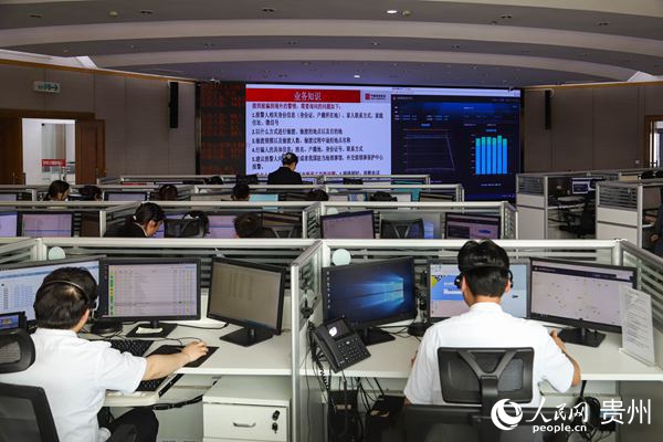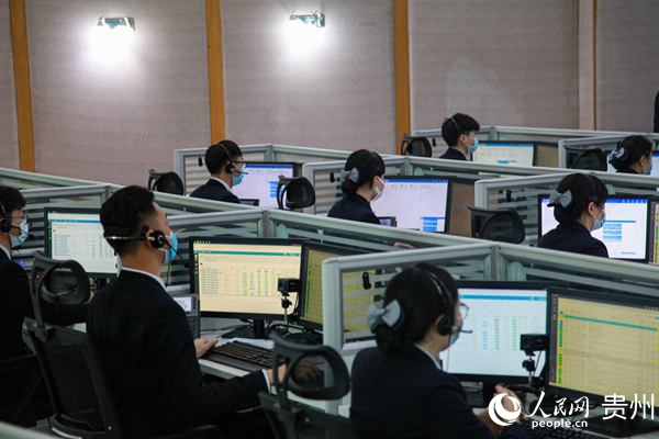 在貴州110服務中心,接線員正在工作。人民網 李宇攝