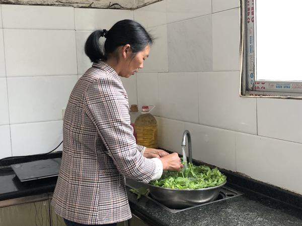 村民毛佑敏在廚房用自來水洗菜。周夢真攝
