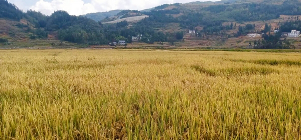 普安縣哈馬壩區稻漁綜合養殖區稻谷金黃一片。
