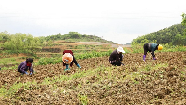 村民在基地種植魔芋。