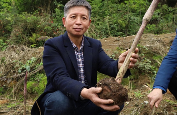 不負青山,方得金山。李書平在林下種植的魔芋,可加工成食用、保健、和美容產(chǎn)品,市場廣闊,銷往重慶、云南等地。他種的魔芋最大可達11斤,市場價每斤在3元左右,50畝預(yù)計能產(chǎn)20萬斤。下一步,他還準備在林下放養(yǎng)1000只土雞,以種養(yǎng)循環(huán)的方式助力鄉(xiāng)村振興發(fā)展。
