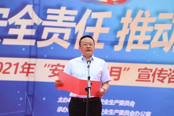 活動上,王成剛說,安全生產必須警鐘長鳴,常抓不懈!各級各部門、各單位要立即行動起來,緊扣“落實安全責任,推動安全發展”的主題,按照全市“安全生產月”系列活動安排和安全生產專項整治三年行動集中攻堅階段的有關工作部署和要求,堅持貼近實際、貼近生活、貼近群眾,以豐富多彩的內容、喜聞樂見的方式,充分運用現代傳媒手段,加大宣傳力度,凝聚生命至上共識,營造安全發展的濃厚氛圍。希望我們大家共同攜起手來,從我做起、從現在做起,積極投身到安全發展的各個領域、各類活動、各項工作之中,爭做安全生產的有心人、促進者,以實際行動共同維護全市安全生產良好態勢,努力為譜寫百姓富生態美多彩貴州新未來的安順篇章創造和諧穩定的社會環境。