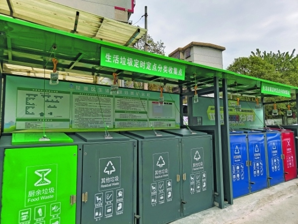 溪北小區生活垃圾定時定點分類收集點。