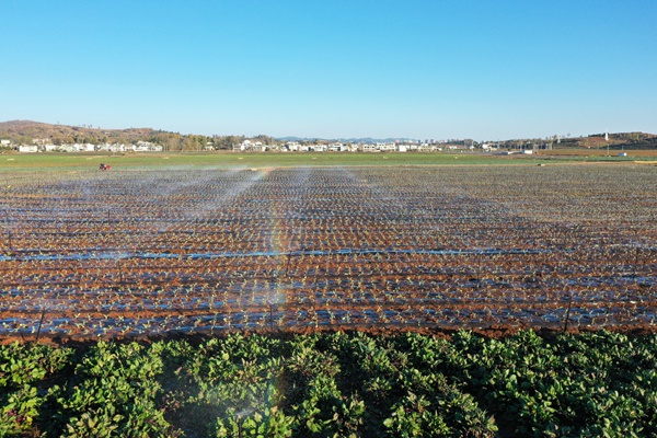 威寧自治縣草海鎮(zhèn)中海社區(qū)蔬菜基地噴滴灌。周天貴攝