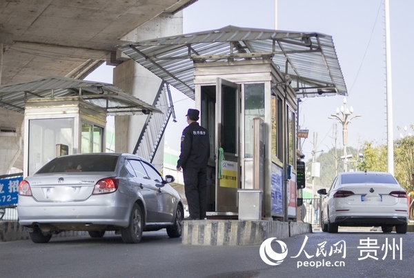 在貴陽北站停車場,安裝ETC設備的車輛能實現自動扣費、自動抬桿。人民網 龍章榆攝