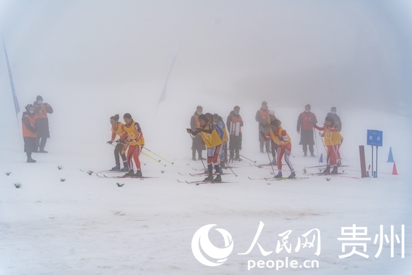 貴州省第十一屆運動會冬季項目上,參賽運動員們從起點出發。人民網 涂敏攝