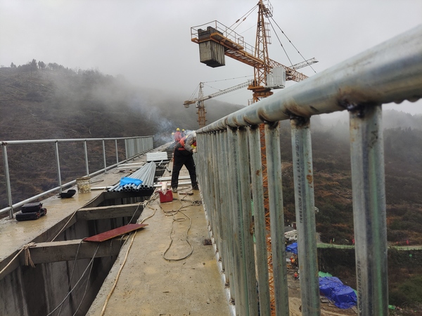 據(jù)中鐵十二局夾巖水利樞紐項(xiàng)目部技術(shù)科科長(zhǎng)唐健哲介紹:金沙分干渠五營(yíng)寨渡槽,是金沙縣內(nèi)最高也是最長(zhǎng)的一個(gè)排水渡槽,五營(yíng)寨渡槽總長(zhǎng)180米, 一共12跨,最高處排架高度28米,五營(yíng)寨渡槽從2021年10月7日開始施工,經(jīng)過3個(gè)月參建各方的配合,最后一跨順利完成合攏。
