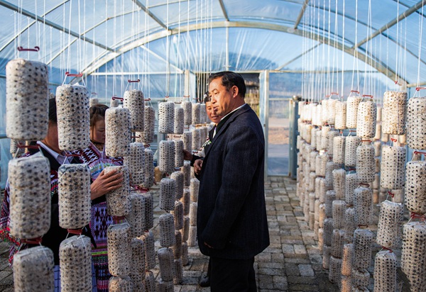 文正友給村民講解香菇種植技術。李學友攝