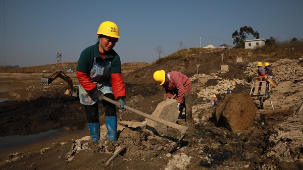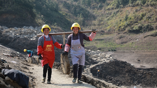 “在家里面沒有什么事情做,就來這里上班了,一天能得120塊錢。希望水庫修得好、修得快,讓這周邊的寨子都能更幸福、能用這個水!遍L順縣代化鎮打朝村村民梁云珍臉上掛滿笑容。(圖/文 羅遠鵬、宋恒婷 )