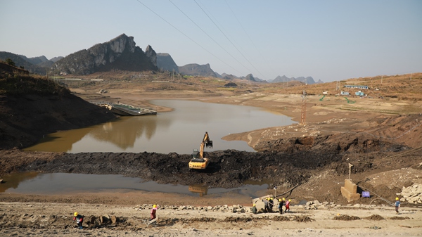 長順縣天生橋水庫除險加固施工現場。