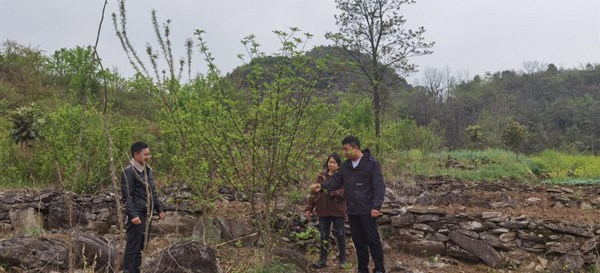 代康正在指導(dǎo)村干部和村民如何管護(hù)花椒樹。