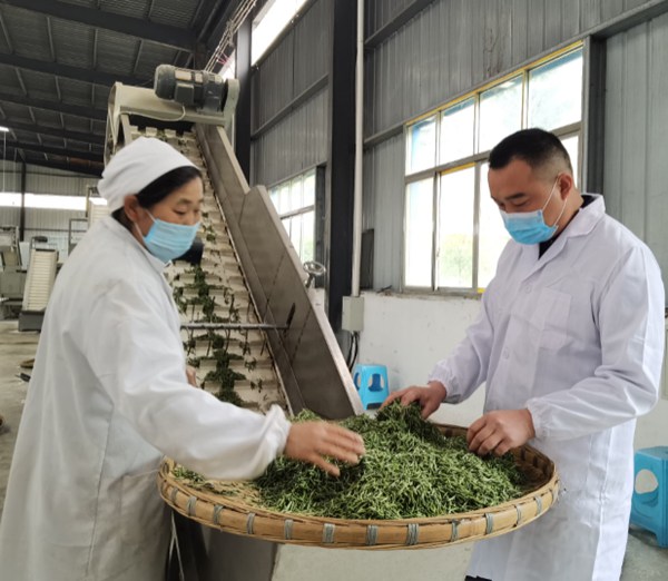 張全景正在指導(dǎo)工人制茶。