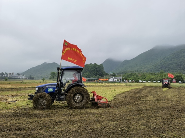 在如今缺少耕牛耕地的情況下,農機機耕服務受到了村民的熱烈歡迎。