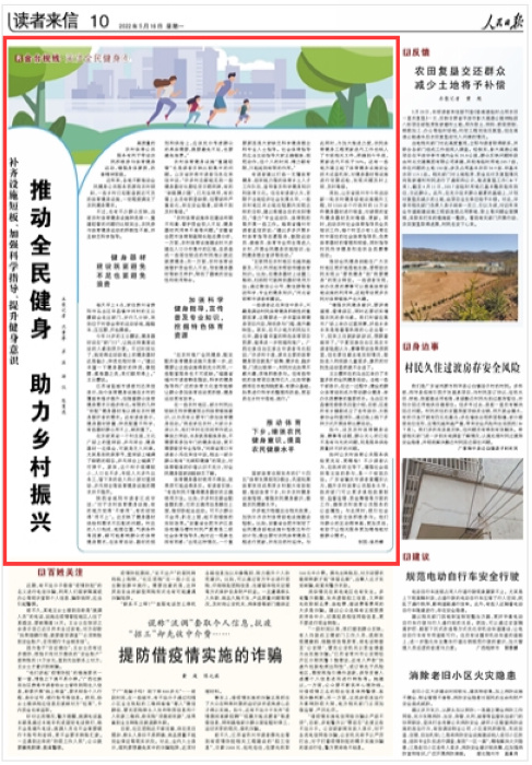 有讀者建議打造一支懂體育健身、組織能力強的體育鄉土人才工作隊伍,宣傳普及科學健身知識和體育文化。但也有讀者認為,受限于當地經濟社會發展水平,一些農村地區未必能在短期內實現這樣的目標,建議根據各自的實際情況,“借力”專業運動隊、體育院校等開展一些工作。海南省儋州市讀者孟信賢說:“建議多多開展鄉村體育指導志愿服務,鼓勵運動員、教練員、體育專業師生等進入鄉村,開展全民健身技能培訓、全民健身理念宣講等活動。”