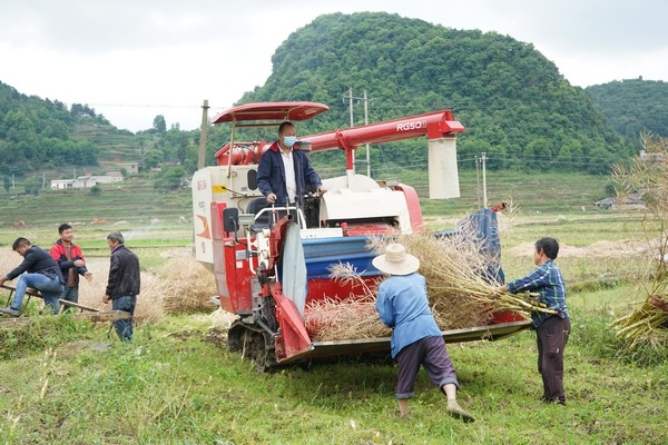 村民張光容:“以前我們用糧桿來收,要5個(gè)人收一天的,現(xiàn)在半個(gè)小時(shí)都要不了,就搞定了。通過朋友介紹來的這個(gè)機(jī)子,現(xiàn)在機(jī)收做到了‘好快省’。”