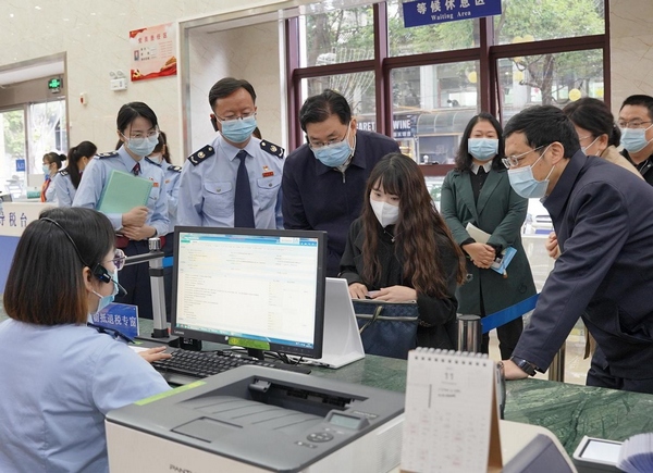 貴州省稅務(wù)局黨委書記、局長丁習(xí)文到貴陽市南明區(qū)稅務(wù)局辦稅大廳開展“一把手”走流程活動。