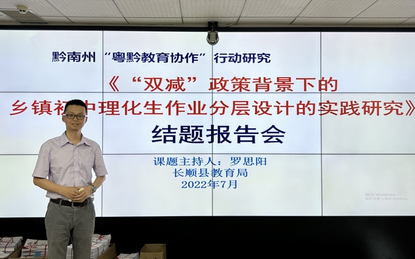 長(zhǎng)順縣東西教育協(xié)作組以在黔南州“粵黔教育協(xié)作”行動(dòng)研究課題結(jié)題會(huì)中,受到黔南州州教育局的課題專家組充分肯定的優(yōu)秀課題《“雙減”政策背景下的鄉(xiāng)鎮(zhèn)初中理化生作業(yè)分層設(shè)計(jì)的實(shí)踐研究》為具體研討案例,并針對(duì)該縣開展雙減背景下的初中課后作業(yè)分層的研究和實(shí)施情況,與黃埔區(qū)的教育教學(xué)專家進(jìn)行線上互動(dòng)。整個(gè)活動(dòng)以線上和線下的專項(xiàng)課題實(shí)踐研究成果匯報(bào)、教育專家點(diǎn)評(píng)和講座交流等方式進(jìn)行。