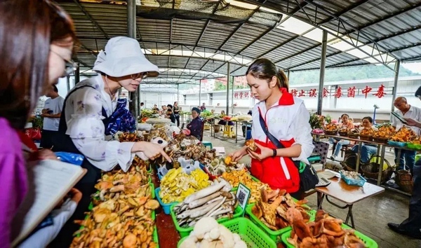 谷腳鎮的觀音村入選貴州“第三批鄉村旅游重點村”,森林覆蓋率達85%。因盛產野生菌,素有“黔中第一菌”的美譽。走進觀音村野生菌交易市場,紫花菌、大腳菇、雞縱菌、鵝肝菌、牛蹄菌、黃石菌等各類野生菌一應俱全,吸引了不少省內外游客前來購買。