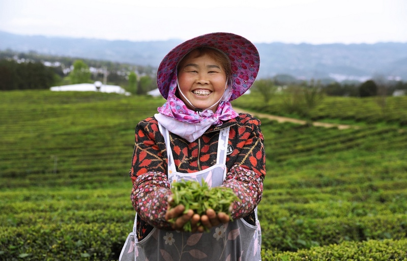 農戶手捧剛摘下的新茶喜笑顏開。滿幫集團供圖